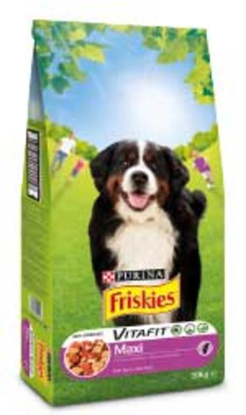 FRISKIES VITAFIT MAXI DOG ADULT proporciona una nutrición 100% completa y equilibrada incluyendo vitamina D y minerales para unos huesos fuertes. Está compuesto por croquetas más grandes para ayudar a promover una masticación adecuada y mantener una buena higiene oral.